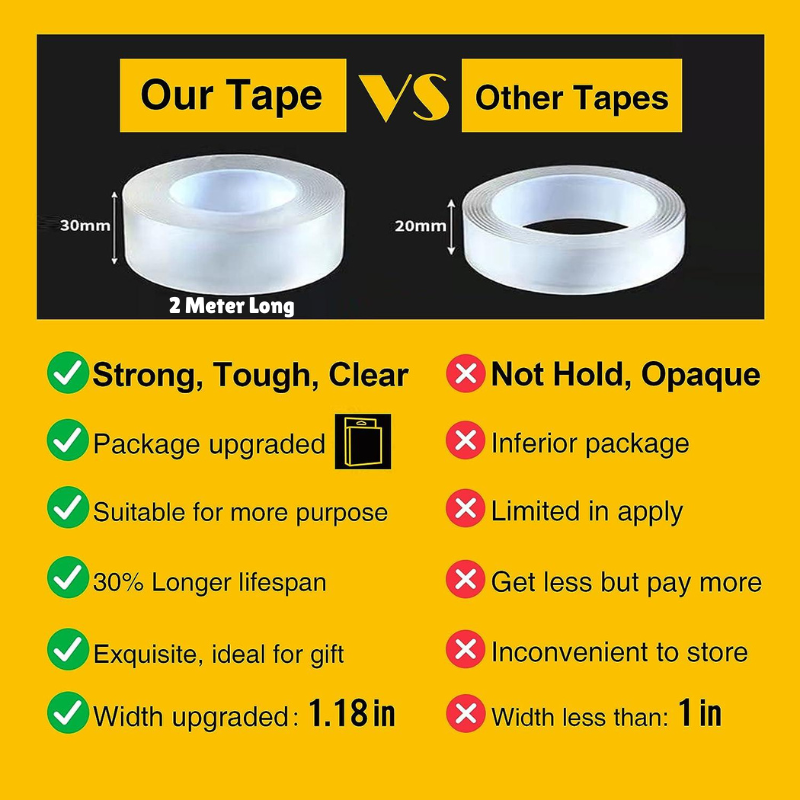Introducing our 2 Meter Multipurpose Double-Sided Nano Tape, a must-have for any party planning needs. This clear grip tape boasts strong adhesive, washable and reusable qualities, making it the perfect choice for creating decor, hanging banners, and securing decorations without leaving any trace.
