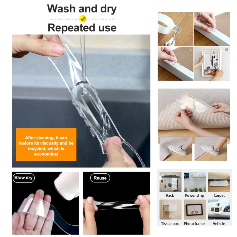 2 Meter Multipurpose Double-Sided Nano Tape – Strong Adhesive, Washable & Reusable Traceless Clear Grip Tape (1 Pcs)