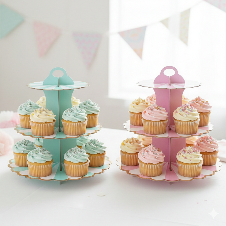 Elevate your party desserts with The Party Shop’s 3-Tier Cardboard Dessert & Cupcake Stand! Perfect for birthdays, weddings, and any celebration in between. Display cupcakes, pastries, or even small balloons on each tier for a festive touch.