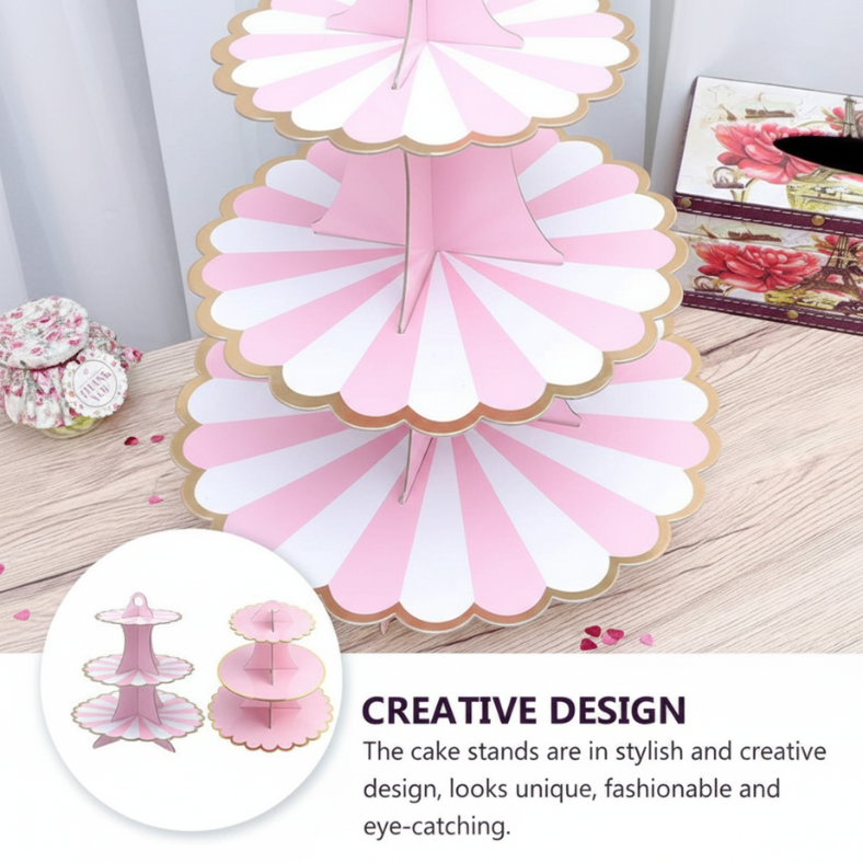 3-Tier Cardboard Dessert & Cupcake Stand – Perfect for Birthdays, Weddings & Parties- (Pack of 1 Set)
