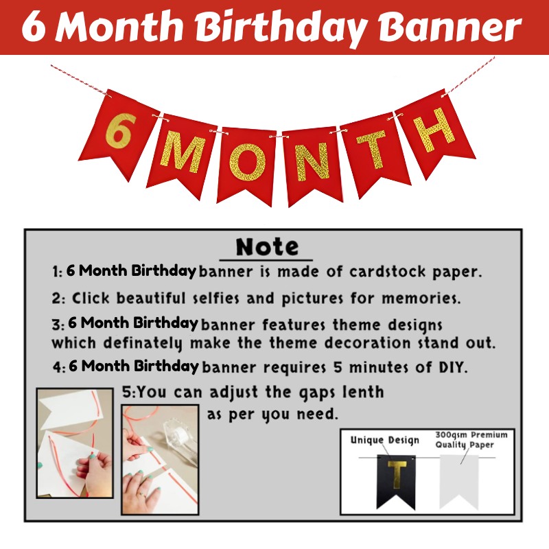 6-Month Birthday Banner | Half Way to One Milestone Birthday Decoration for Boys & Girls- (Pack of 1 Pcs)