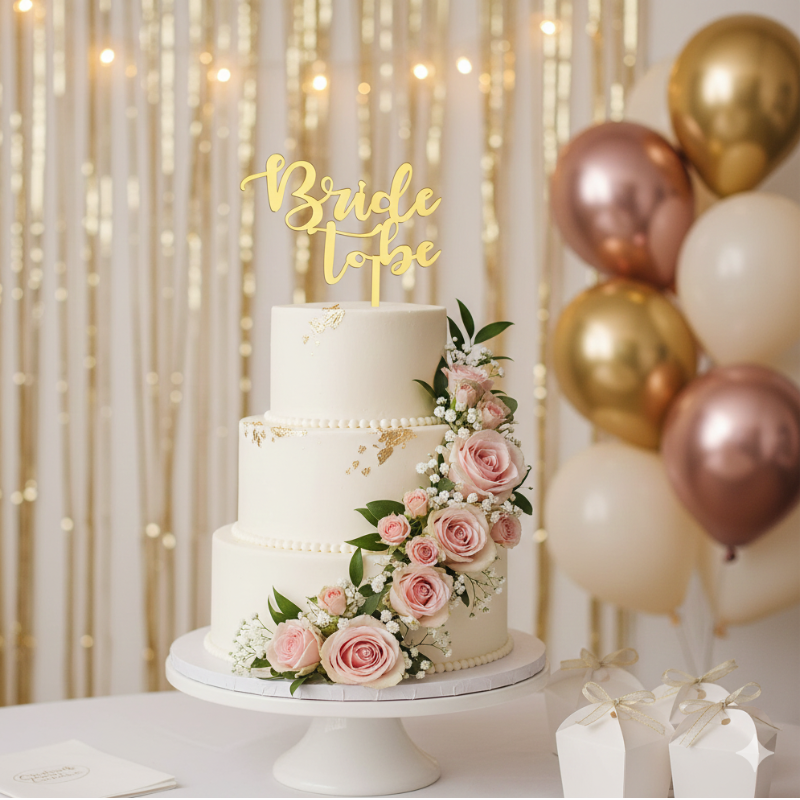 Elevate your bridal shower, bachelorette party, engagement, or pre-wedding celebration with our elegant Bride To Be Cake Topper. Made for the modern bride, this exquisitely crafted topper adds a touch of sophistication to your cake.