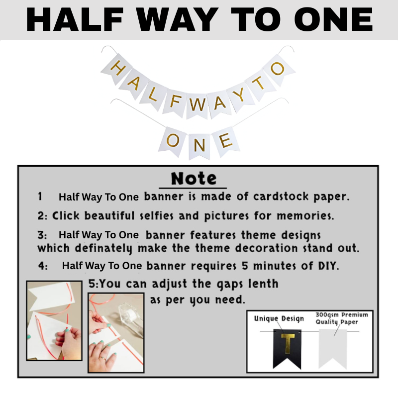 Half Way to One Birthday Banner | 6-Month Birthday Decoration for Boys & Girls- (Pack of 1 Pcs)
