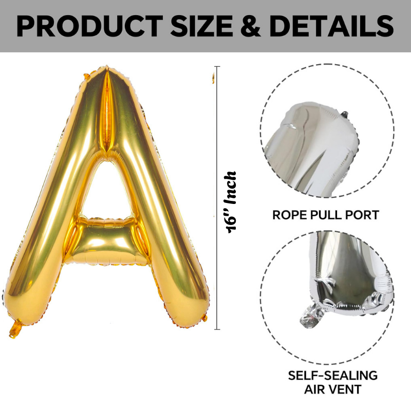 Letter Foil Balloon (16” Inch) | Golden & Silver Letter Foil Balloon for Birthday, Anniversary, Events and Party Decoration Items- (1 Pcs)