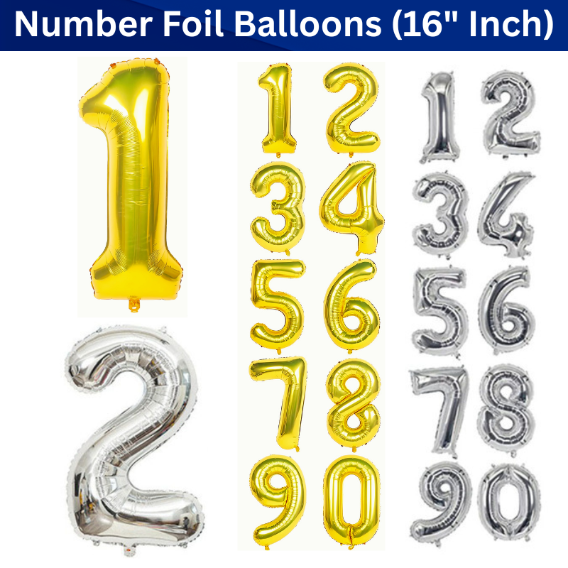 Add a touch of sophistication to your party decor with our Number Foil Balloon. Available in shimmering gold or silver, this 16-inch balloon is ideal for birthdays, anniversaries, and other special events. Make a memorable impression with this stylish and versatile decoration option.