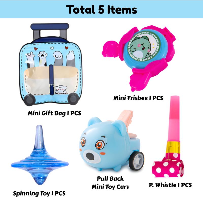 Make your child’s birthday celebration even more memorable with our premium birthday return gift pack. This creative gift set features a cute mini luggage-style bag that children will love to carry. Inside each bag, there are 5 different surprise toys designed to bring joy to every little guest who attends the party. It is a perfect way for the birthday boy or girl to say thank you to their friends with a fun and unique party favor.