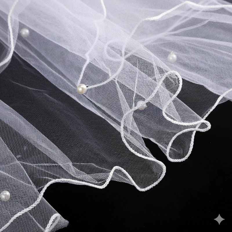 Premium Double-Layered Bridal Veil with Pearl Beaded Butterfly Bow – Elegant 55cm Hair Clip Style (1 Pcs)