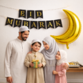 Eid Mubarak Decoration Combo Set with Golden Moon Foil, Backdrop, Metallic Balloon, EID Banner, Arch & More- (56 Pcs)