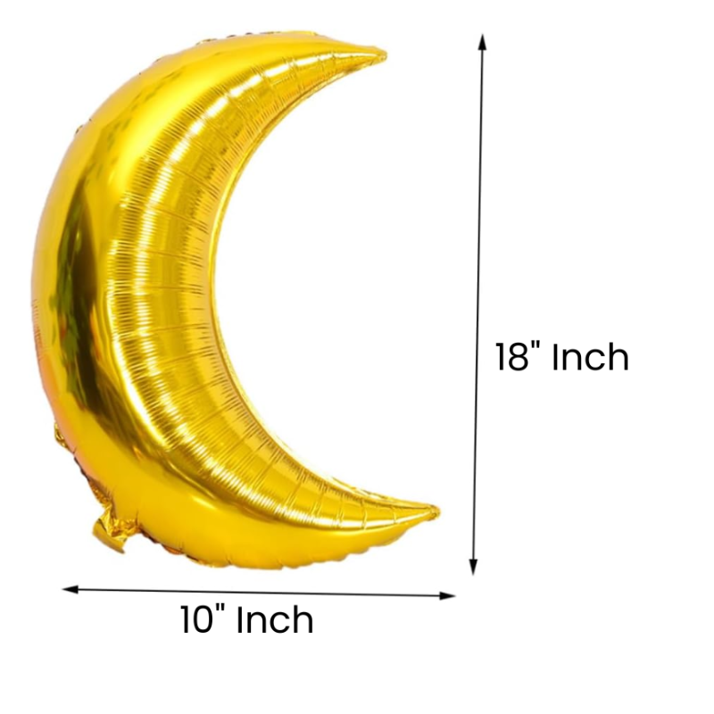 Elevate your party decor with our Premium Golden Moon Shaped Foil Balloon! This 18-inch shimmering gold balloon is perfect for birthdays, Eid, Ramadan, or any elegant celebration. Add a touch of celestial charm to your event with this gorgeous balloon.